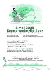 De eerste gezamenlijke activiteit is al gepland: op zaterdag 3 mei wordt een wedstrijd georganiseerd. Meer details zijn te vinden op de poster hieronder: