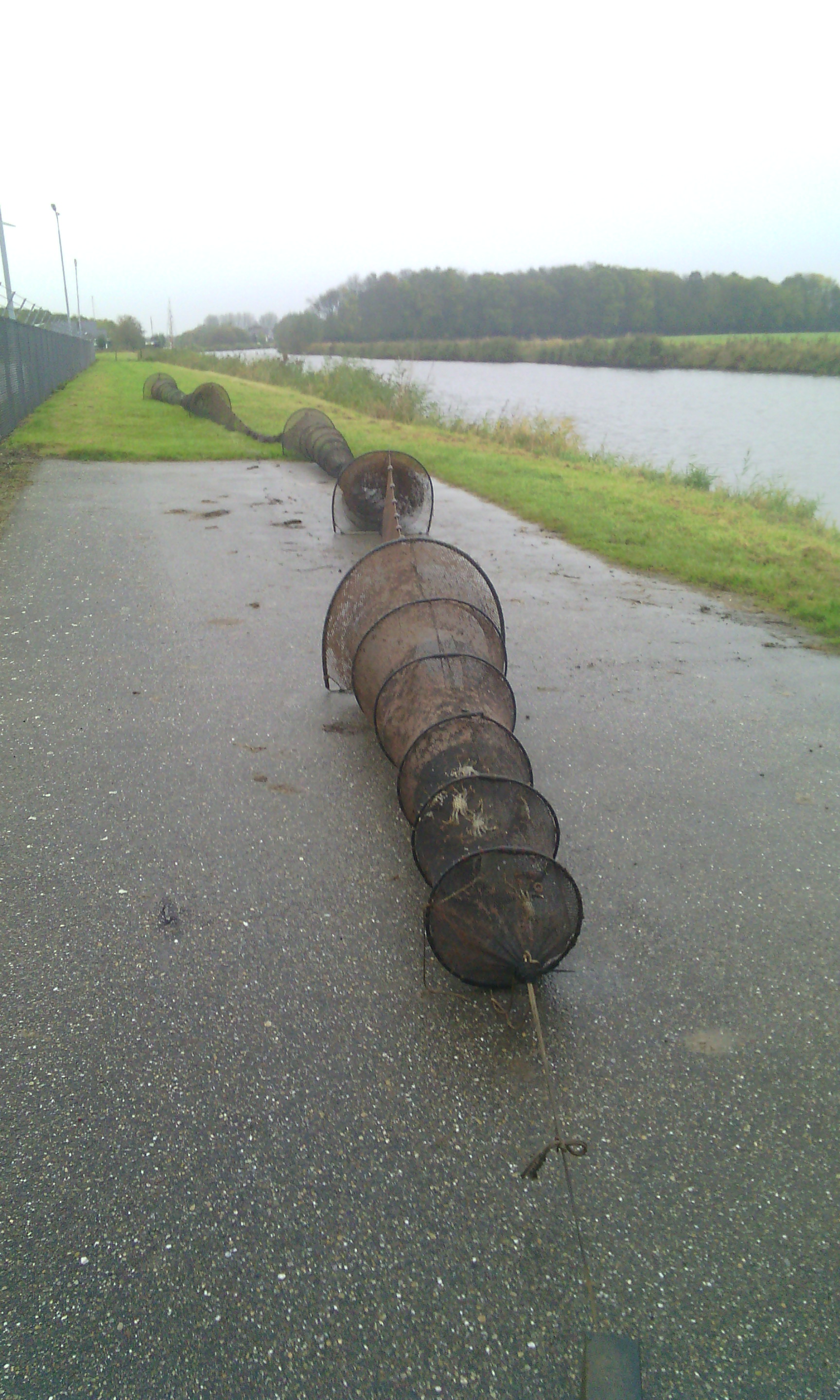 Daarnaast heeft de politie uit Delfzijl vorige maand naar aanleiding van een melding van een sportvisser over illegaal geplaatste fuiken een controle uitgevoerd op het Termunterzijldiep. Hierbij zijn een aantal fuiken van de beroepsvisser. De door de politie gelichte fuiken waren voorzien van een ontsnappingsmogelijkheid voor aal. Tevens is een serie illegale schietfuiken uit het Termunterzijldiep gehaald. Deze fuiken, twee dubbele schietfuiken en één enkele schietfuik, waren aan de landzijde bevestigd aan een stok die bij normale waterstand net onder water had gestaan. Vanwege de lage waterstand bevond deze zich net boven water. De serie stond diagonaal in het diep en was verzwaard met twee blokken beton. De fuiken zijn in beslag genomen en zullen worden vernietigd. De controle van de politie werd uitgevoerd samen met één van onze federatiecontroleurs. De controleur stelde zijn eigen boot beschikbaar. De politie is hem zeer erkentelijk, want zonder onze vrijwilliger had dit niet tot dit resultaat geleid.